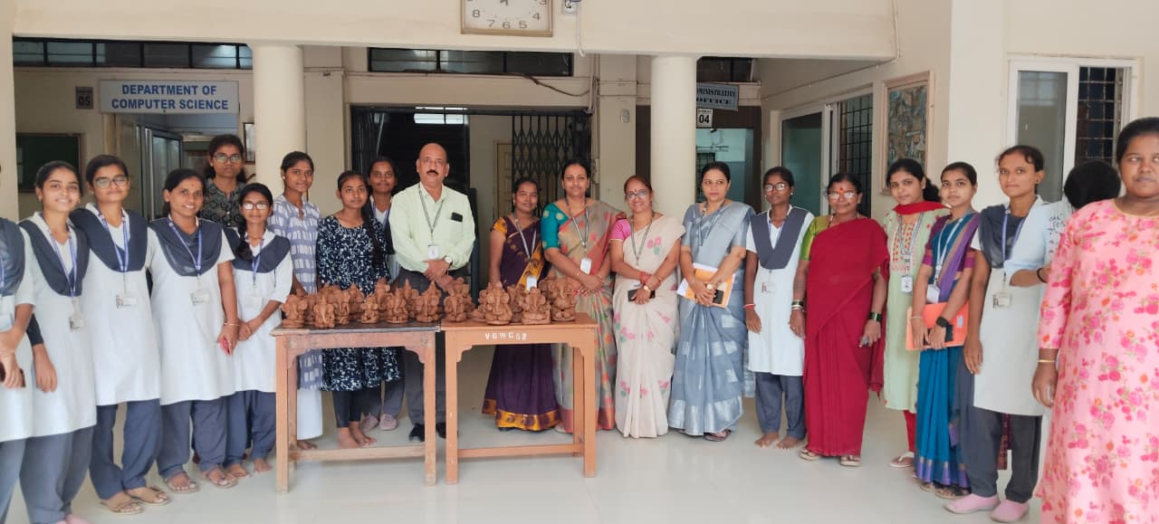 ಕಲಬುರಗಿ: ಹೈದರಾಬಾದ ಕರ್ನಾಟಕ ಶಿಕ್ಷಣ ಸಂಸ್ಥೆಯ ಶ್ರೀಮತಿ ವೀರಮ್ಮ ಗಂಗಸಿರಿ ಮಹಿಳಾ ಮಹಾವಿದ್ಯಾಲಯದ ವಿದ್ಯಾರ್ಥಿನಿಯರು ಮಹಾವಿದ್ಯಾಲಯದ ಆವರಣದಲ್ಲಿ ಪರಿಸರ ಸ್ನೇಹಿ ಗಣಪತಿ ವಿಗ್ರಹಗಳು ತಯಾರಿಕೆ ಮಾಡಿದರು.