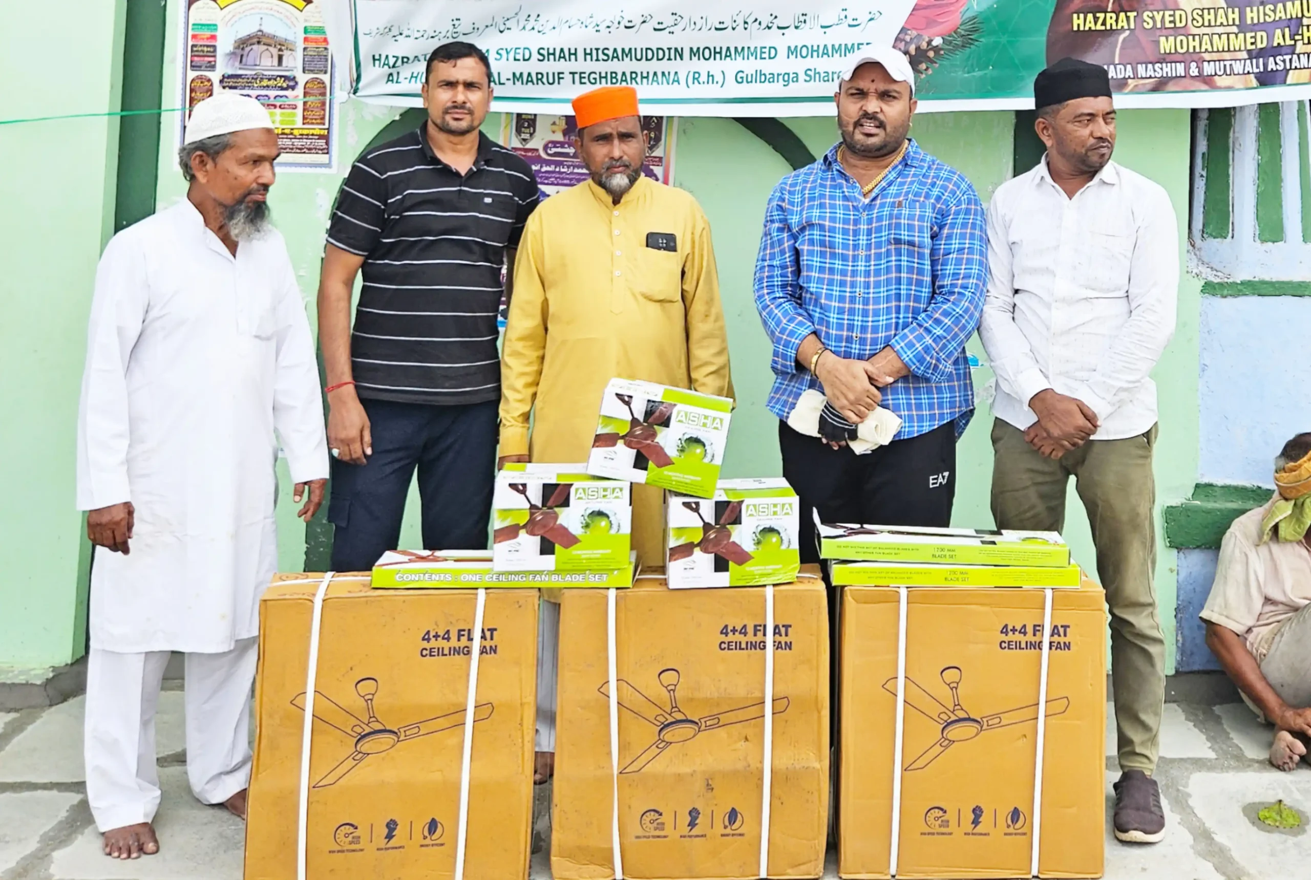 ಕಲಬುರಗಿ : ನಗರದ ಮಾರ್ಕೆಟ್ ರಸ್ತೆಯಲ್ಲಿ ಇರುವ ಟೇಕ್ ಬರ್ಹಾನಾ ಆರ್ ಎಚ್ ದರ್ಗಾ ಸೆಪ್ಟೆಂಬರ್ ೨೦ರಂದು ಉರುಸ್ ಹಾಗೂ ಸಂದಾಲ ಜಾತ್ರಾ ಮಹೋತ್ಸವದ ಪ್ರಯುಕ್ತ ಸಮಾಜ ಸೇವಕರಾದ ಶ್ರೀಕಾಂತ್ ರೆಡ್ಡಿ ಅವರು ಇಪ್ಪತ್ತು ಸೀಲಿಂಗ್ ಫ್ಯಾನ್ ಉಡುಗೊರೆಯಾಗಿ ನೀಡಿದರು. ನಂತರ ಟೇಕ್ ಬರ್ಹಾನಾ ಆರ್ ಎಚ್ ದರ್ಗಾದ ಸಾಹೇಬ್ ಆದಂತಹ ಹಜರತ್ ಸೈಯದ್ ಷಾ ಹಿಸಾಮುದ್ದಿನ್ ಮೊಹಮ್ಮದ್ ಅಲ್-ಹುಸೇನಿ ಅಸ್ತಾನಾ ಅವರ ಆಶೀರ್ವಾದ ಪಡೆದರು.