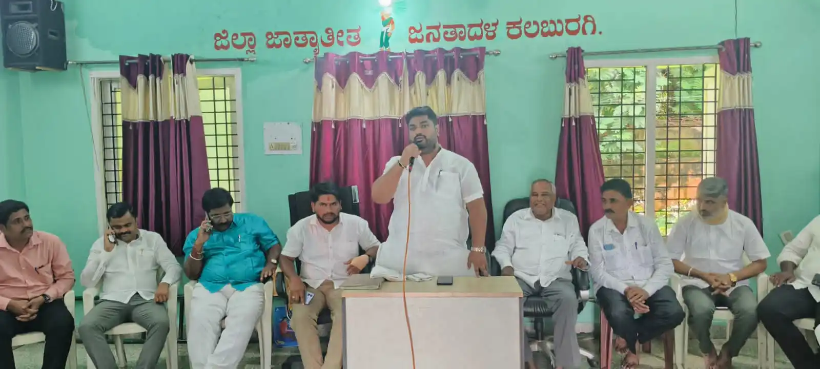 ನಗರದ ಜಿಲ್ಲಾ ಜೆಡಿಎಸ್ ಕಚೇರಿಯಲ್ಲಿ ನಡೆದ ಜಿಲ್ಲಾ ಯುವ ಜನತಾದಳದ ಸಭೆಯಲ್ಲಿ ಮಾತನಾಡಿದ ಈ ದೇಶದ ಭವಿಷ್ಯ ರೂಪಿಸಿವಲ್ಲಿ ಯುವಕರ ಪಾತ್ರ ಪ್ರಮುಖ ಎಂದು ಹೇಳಿದರು. ಇದೆ ಸಂದರ್ಭದಲ್ಲಿ ರಾಜ್ಯ ವಕ್ತಾರ ದೇವೇಗೌಡ ತೆಲ್ಲೂರು, ರಾಜ್ಯ ಪ್ರಧಾನ ಕಾರ್ಯದರ್ಶಿ ಶಿವಕುಮಾರ್ ನಾಟಿಕರ್, ಮಹಾ ಪ್ರಧಾನ ಕಾರ್ಯದರ್ಶಿ ಬಸವರಾಜ್ ಬಿರಿಬಿಟ್ಟಿ ಸಭೆಯನ್ನುದೇಶಿಸಿ ಮಾತನಾಡಿದರು. ಸಭೆಯ ಅಧ್ಯಕ್ಷತೆಯನ್ನು ಜಿಲ್ಲಾ ಯುವ ಅಧ್ಯಕ್ಷ ಪ್ರವೀಣ್ ಜಾದವ್ ರವರು ವಹಿಸಿ ಮಾತನಾಡುತ್ತಾ ಶೀಘ್ರದಲ್ಲಿಯೇ ಯುವ ಜನತಾದಳ ತರಬೇತಿ ಶಿಬಿರವನ್ನು ನಡೆಸಲಾಗುವುದು ಎಂದರು. ಇದೇ ಸಂದರ್ಭದಲ್ಲಿ ರಾಜ್ಯ ವಕ್ತಾರ ದೇವೇಗೌಡ ತೆಲ್ಲೂರ್ ಅವರ ೬೧ನೇ ಹುಟ್ಟುಹಬ್ಬವನ್ನು ಆಚರಿಸಿ ಶುಭ ಕೋರಲಾಯಿತು. ಸಭೆಯಲ್ಲಿ ದೇವೇಂದ್ರಪ್ಪ ಹಸನಾಪೂರ್ ಅವರು ನಿರೂಪಿಸಿ ವಂದಿಸಿದರು. ಏಸುನಾಥ್ ರವರು ಸ್ವಾಗತಿಸಿದರು. ಸಭೆಯಲ್ಲಿ ರಾಜಾ ಪಟೇಲ್, ಕಿರಣ ಪಾಟೀಲ್, ಹಣಮಯ್ಯ ಗುತ್ತೇದಾರ್,ಸೇರಿದಂತೆ ಜಿಲ್ಲೆಯ ವಿವಿಧ ತಾಲೂಕಿನ ಯುವಕರು ಸಭೆಯಲ್ಲಿ ಭಾಗವಹಿಸಿದ್ದರು.