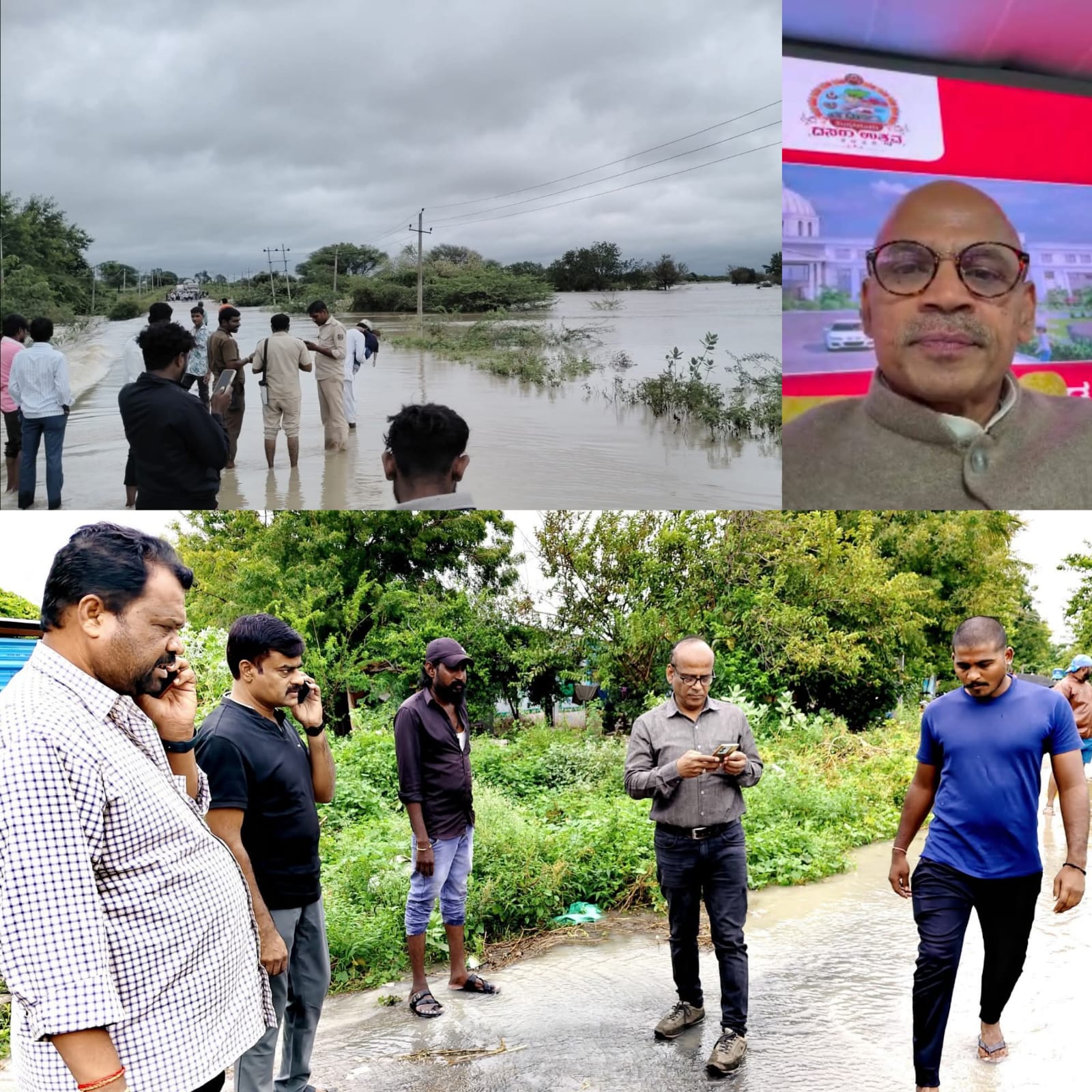 ಸಟಪಟನಳ್ಳಿ ಗ್ರಾಮದ ಮುಖ್ಯರಸ್ತೆಯಲ್ಲಿ ಚಿಂಚೋಳಿ-ಸೇಡಂ ಮಾರ್ಗ ಸ್ಥಗಿತಗೊಂಡಿದ್ದು, ವಿಡಿಯೋ ಕಾಲಿಂಗ್ ಮುಖಾಂತರ ವೀಕ್ಷಣೆ ಮಾಡಿ, ಜನರು ನೀರಿಗೆ ಇಳಿಯದಂತೆ ಎಚ್ಚರಿಕೆ ವಹಿಸಲು ಪೋಲಿಸರಿಗೆ ಹಾಗೂ ತಾಲೂಕಾಡಳಿತಕ್ಕೆ ಸೂಚಿಸಿದೆ.