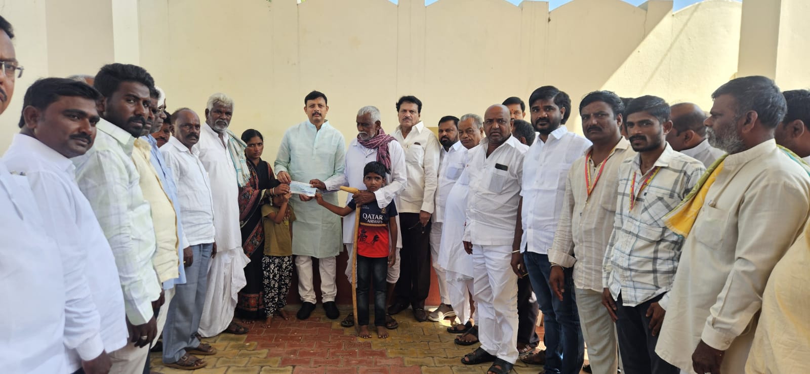 ಸುರಪುರ: ಹೊಲದಲ್ಲಿ ಕೆಲಸ ಮಾಡುವಾಗ ವಿದ್ಯುತ್ ತಂತಿ ತಗುಲಿ ಶಾಕ್‌ ನಿಂದ ಸಾವನಪ್ಪಿದ್ದ ರಂಗಂಪೇಟೆಯ ರೈತ ಸೋಮನಾಥ ಕುಟುಂಬಕ್ಕೆ ಸರಕಾರದ 5 ಲಕ್ಷ ರೂಪಾಯಿಗಳ ಪರಿಹಾರ ಧನದ ಚೆಕ್ ಶಾಸಕ ರಾಜಾ ವೇಣುಗೋಪಾಲ ನಾಯಕ ವಿತರಣೆ ಮಾಡಿದರು.